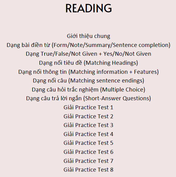 • Không yêu cầu đầu vào, bất kể các bạn đang hướng đến band 6,7 hay 8 đều có thể tham khảo để xây dựng một nền tảng kiến thức và cách tiếp cận phù hợp nhất trước khi đi thi.