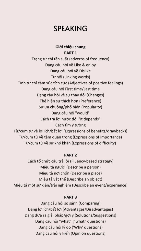 • Bổ sung vốn từ vựng theo topics đủ để đạt band 7,8,9.