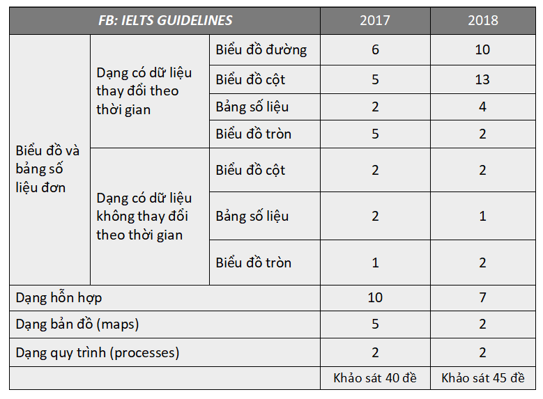 Tỷ lệ xuất hiện của các dạng bài trong IELTS Writing Task One